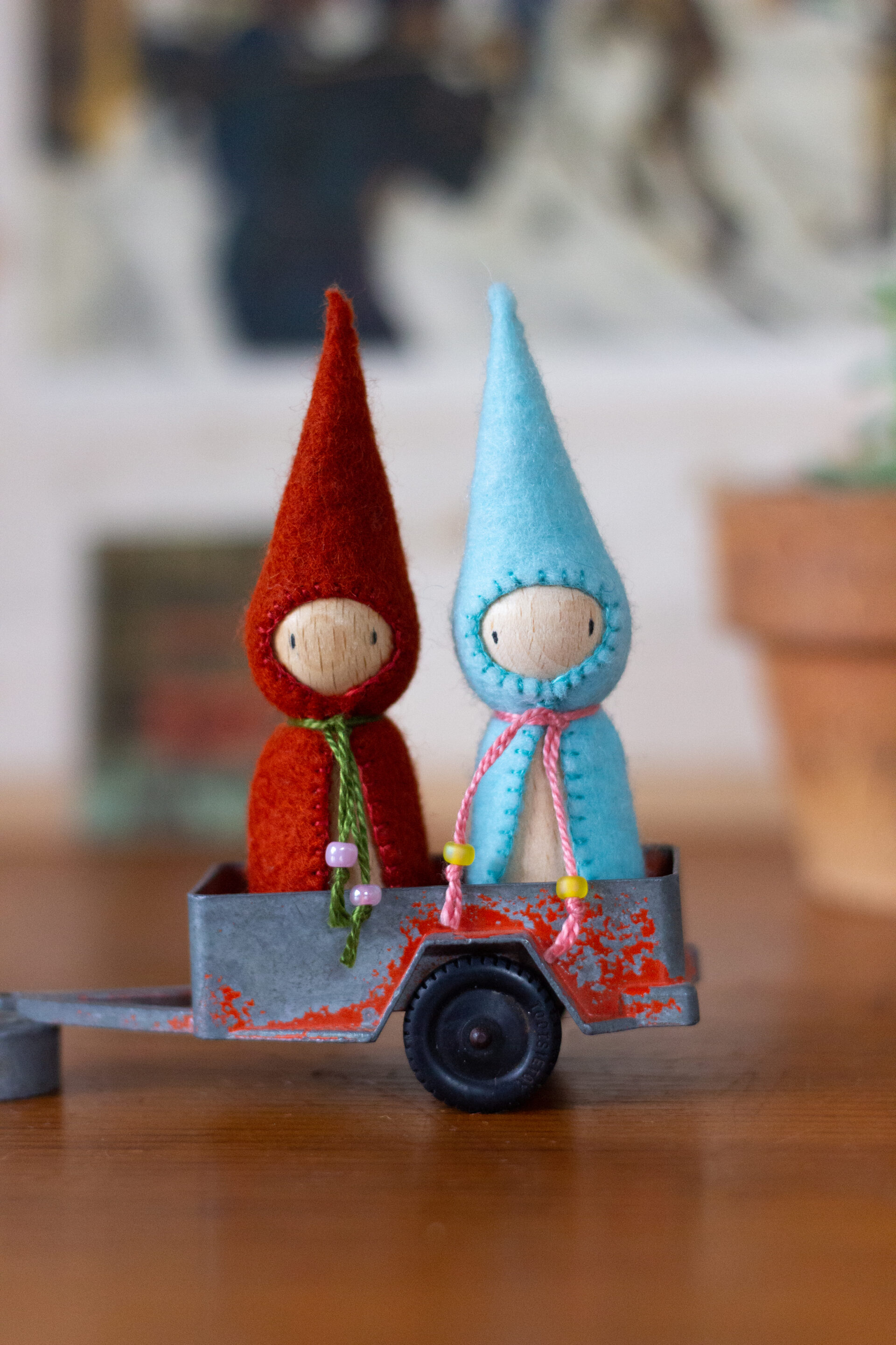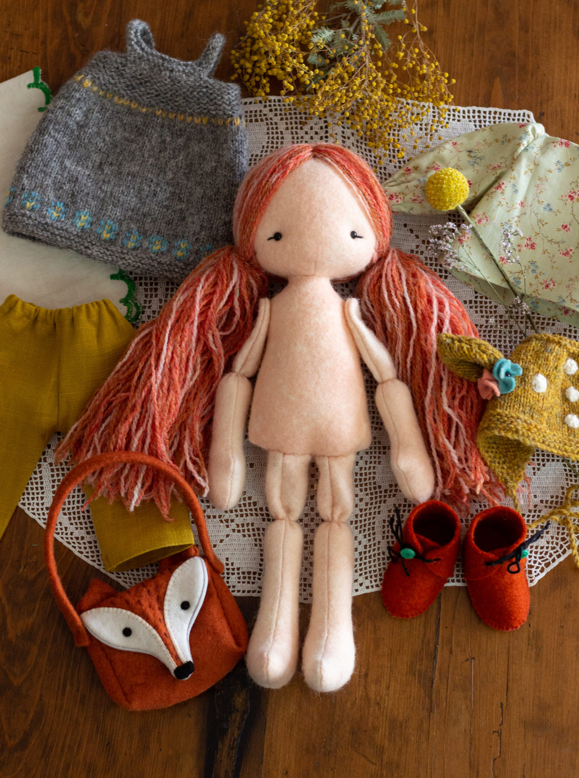 With 100% wool hand dyed felt Hedgerow Dolls, and over 20 original knitted, felt and fabric outfits and accessories, ‘Hedgerow’ provides all the inspiration and know-how needed to bring these beautiful dolls to life.